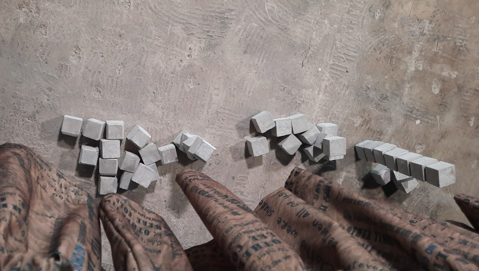 Sand tiles and tissue paper shoes