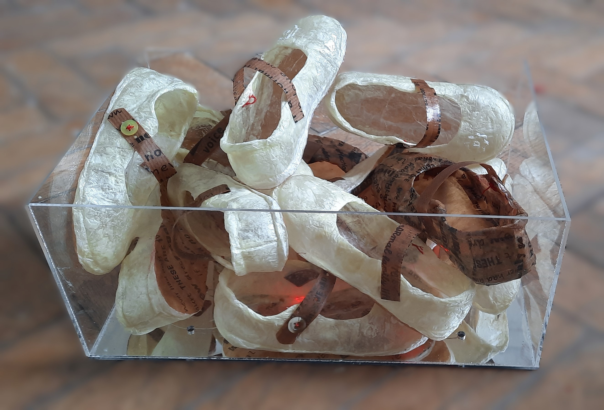 This body of work, inspired by research from published material and first-person accounts, explores lived experiences through an institutionalised childhood lens. Physical and sensory connections with environment influence the structural form and found objects in the installation. Recurring use of multiples in the work speak to the shaping of identity, both collective and personal.